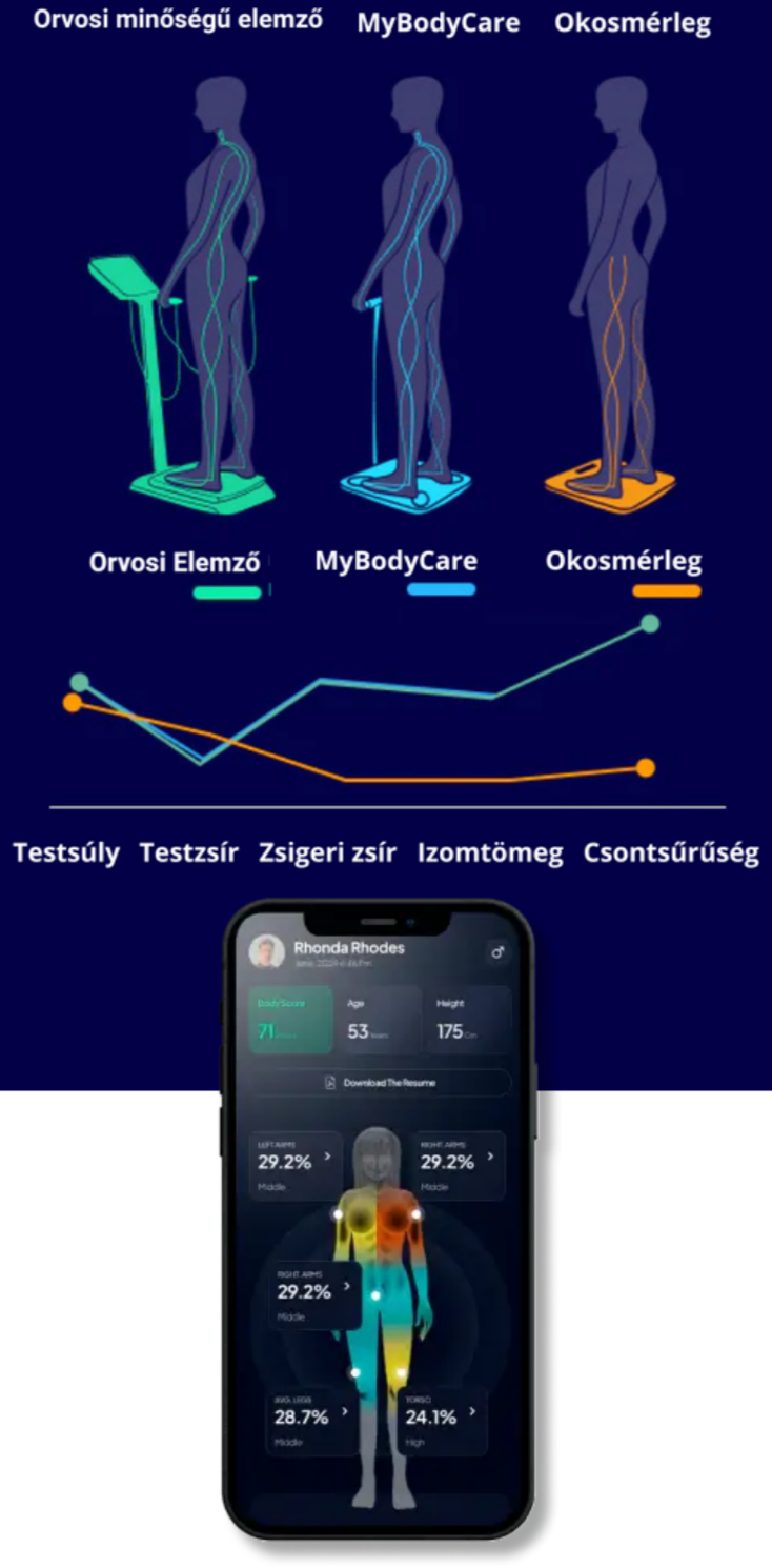 Most először láthatod teljes egészében, mi zajlik a testedben. A MyBodyCare Mérleg segítségével könnyedén megértheted, hogyan reagál a tested az étkezésre, alvásra, stresszre és más tényezőkre, így végre megalapozott döntéseket hozhatsz az egészségeddel kapcsolatban.