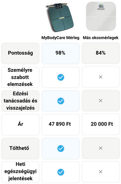 Igen! A MyBodyCare Mérleg kompatibilis az okosóráddal, telefonoddal és más eszközökkel is.
