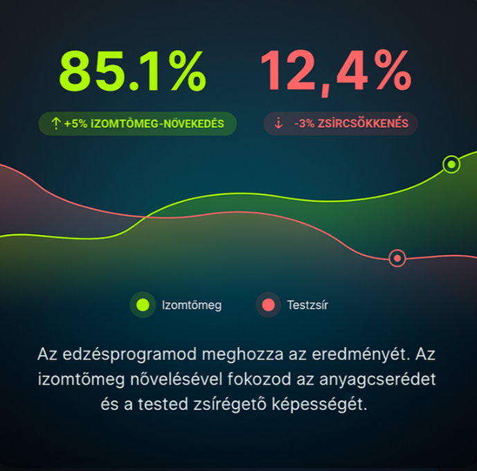 A „fogyás” sokszor izomvesztést is jelent — ez lelassítja az anyagcserét, és megnehezíti a zsírégetést. A Mérleg megmutatja, ha zsírt égetsz, miközben megőrzöd az izomtömeged, vagy akár növeled is azt — így minden leadott kilóval erősebb, egészségesebb, és célodhoz közelebb kerülő önmagaddá válsz.
